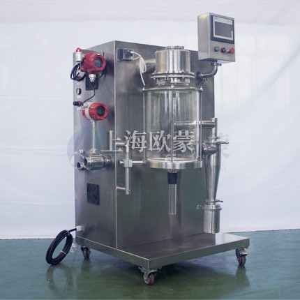 小型噴霧干燥機(jī)主要在科研階段對溶液或流體樣品進(jìn)行噴霧干燥成粉或微小顆粒。其原理是通過霧化器將樣品霧化成微細(xì)霧滴,進(jìn)入干燥室內(nèi)進(jìn)行熱交換,水份瞬間蒸發(fā),固體經(jīng)過旋風(fēng)分離器進(jìn)行回收,飽和氣體經(jīng)過除塵器過濾后排空,本設(shè)備可應(yīng)用于從試驗室到一般研究室的噴霧干燥作業(yè),在食品醫(yī)藥化工行業(yè)均可良好的應(yīng)用。